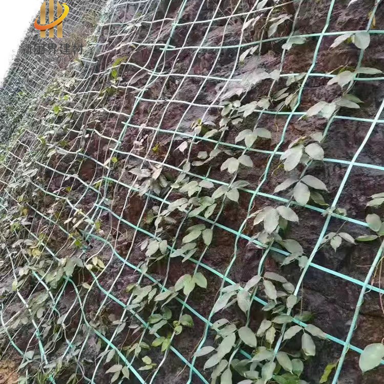 網孔:100*100mm,120*120mm,150*150mm,170*170mm,200*200mm,220*220mm,外層是一層塑料,里面是4根0.35mm的鋼絲,輔助植物攀爬,達到綠化的效果。