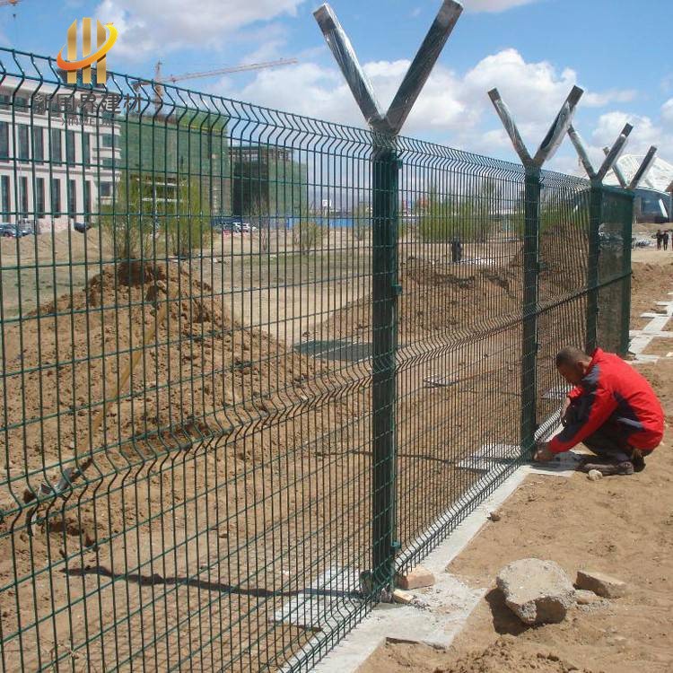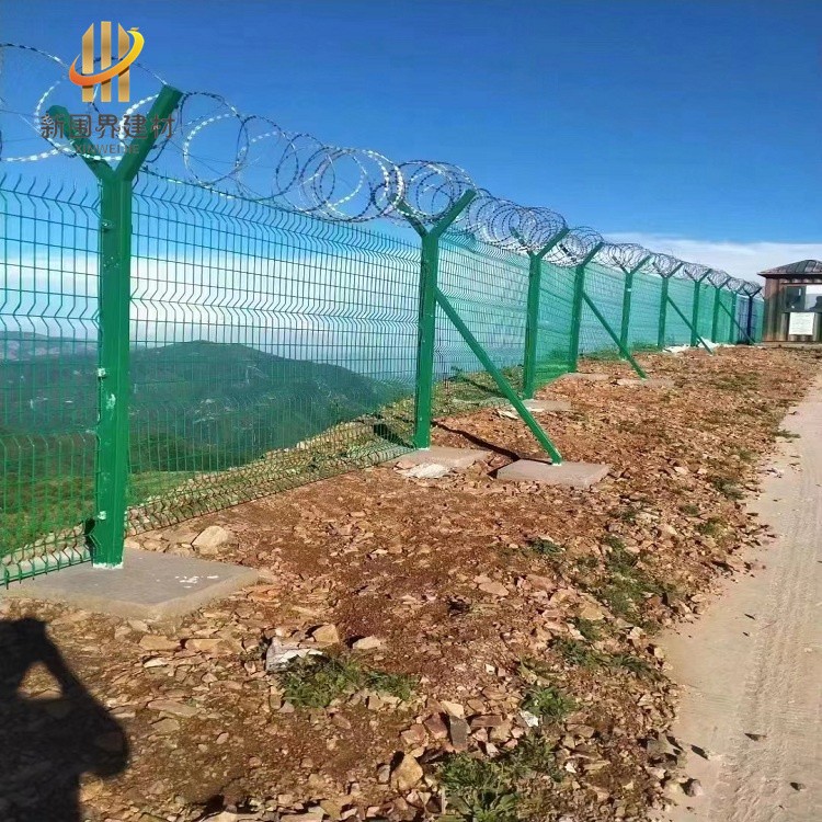 機場框架護欄網、飛機場防護圍欄、綠色Y型柱防攀爬刀片刺網
