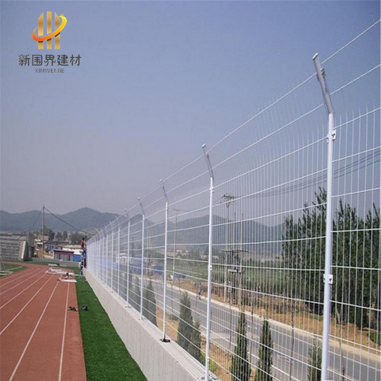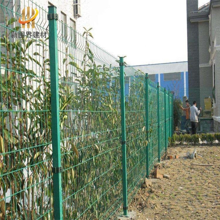 雙邊絲護欄網是鐵絲網護欄中用的較多的一個種類,在鐵絲網片的左右兩邊有間隔較近的兩根邊絲,用以在立柱上固定,雙邊絲護欄也就因此而得名。雙邊絲護欄網片有帶折彎和不帶折彎兩種,立柱也有折彎和不折彎之分。