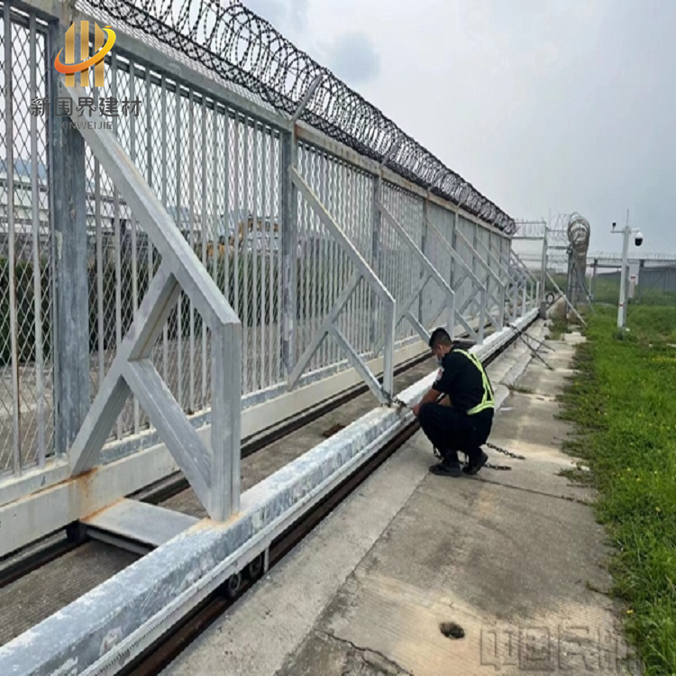 特點(diǎn):如果在機(jī)場(chǎng)護(hù)欄網(wǎng)頂部加裝刀片刺絲、刀片刺繩后又很好的增強(qiáng)了安全防護(hù)性能。采用電鍍、熱鍍、噴塑、浸塑等防腐形式,具有很好的抗老化、抗曬、耐候等特點(diǎn)。其產(chǎn)品造型美觀、花色多樣,既起到圍欄作用,又起到美化作用。由于具有安全性高、防攀爬能力好,網(wǎng)片連接方式采用特制SBS緊扣件,有效防止人為的破壞性拆卸,橫向四道折彎加強(qiáng)筋,使網(wǎng)面強(qiáng)度顯著增加。