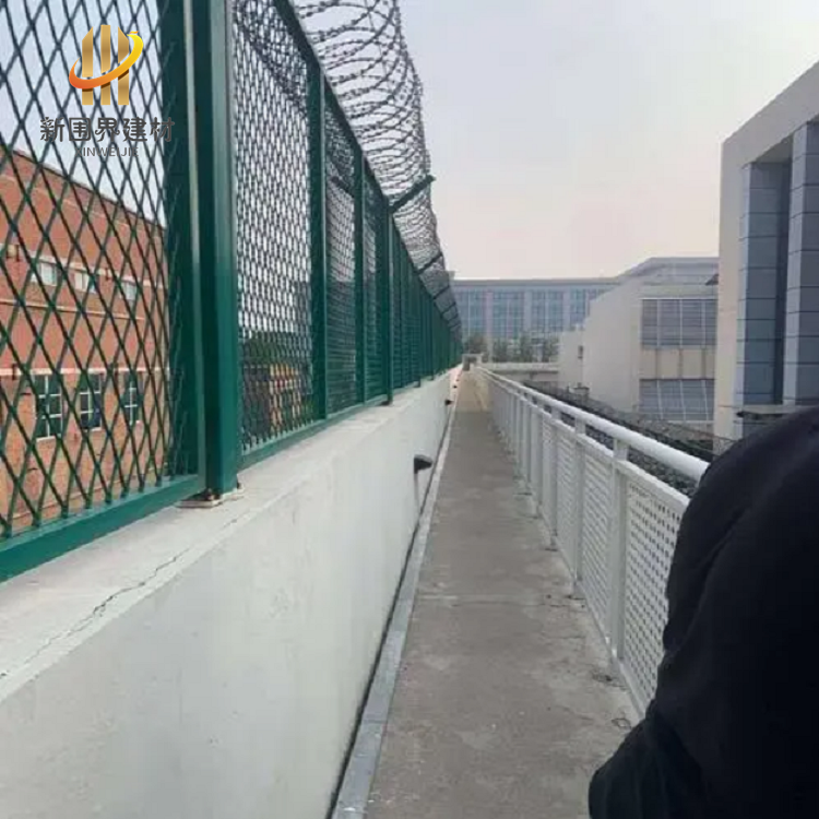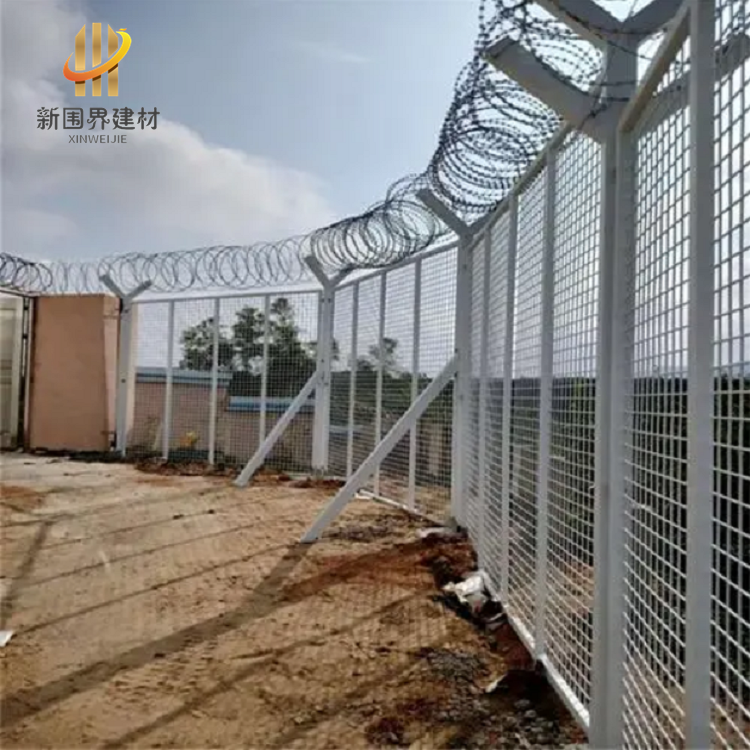 監獄護欄網又稱作“Y型安全防御護網”監獄鋼網墻,是由V型支架立柱,加強型焊接片網,安全防盜連接件和熱鍍鋅刀片刺籠組成強度和安全防御性級別很高,近年來,被廣泛應用在監獄,機場,軍事基地等高安全場所。
