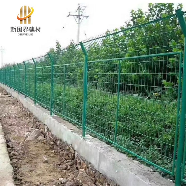 圈地雙邊絲護欄網、高速路防護網、公路浸塑隔離柵
