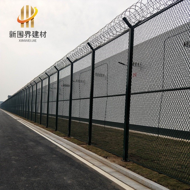 由于不同城市或者不同地區的監舍、監區性質不同,要求不同,所以會出現不同款式、不同規格的高安全隔離網墻??偟膩碚f,都是為了提高防護、隔離、防攀爬和安全性能。以下是幾種近年來比較常用的護欄網鋼網墻。有梅花刺片式的、有菱形孔焊接刀片刺網(其中有重刑犯區域用到的304不銹鋼材質的,也有普通監區用的熱鍍鋅材質的)。這種帶刺隔離網與頂部V型支架蛇腹型刀片刺網的結合使用,使人望而卻步,擊破人的僥幸心理。大大增加了鋼網墻的防攀爬性、抗剪切性能。