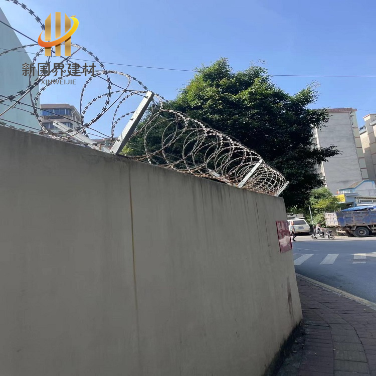 刀刺網它采用鋼板沖壓成型后,包附于熱鍍鋅鋼絲(筋絲)或者不銹鋼絲之上,鋒利的刀刺網由雙線扣裝后成蛇腹狀,既美觀又讓人不寒而栗。起到了很好的阻嚇作用。