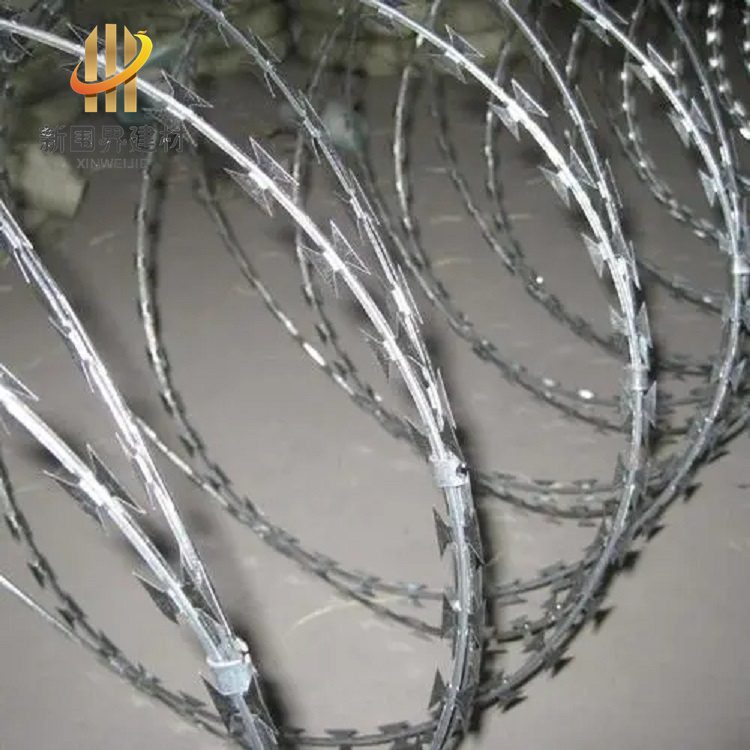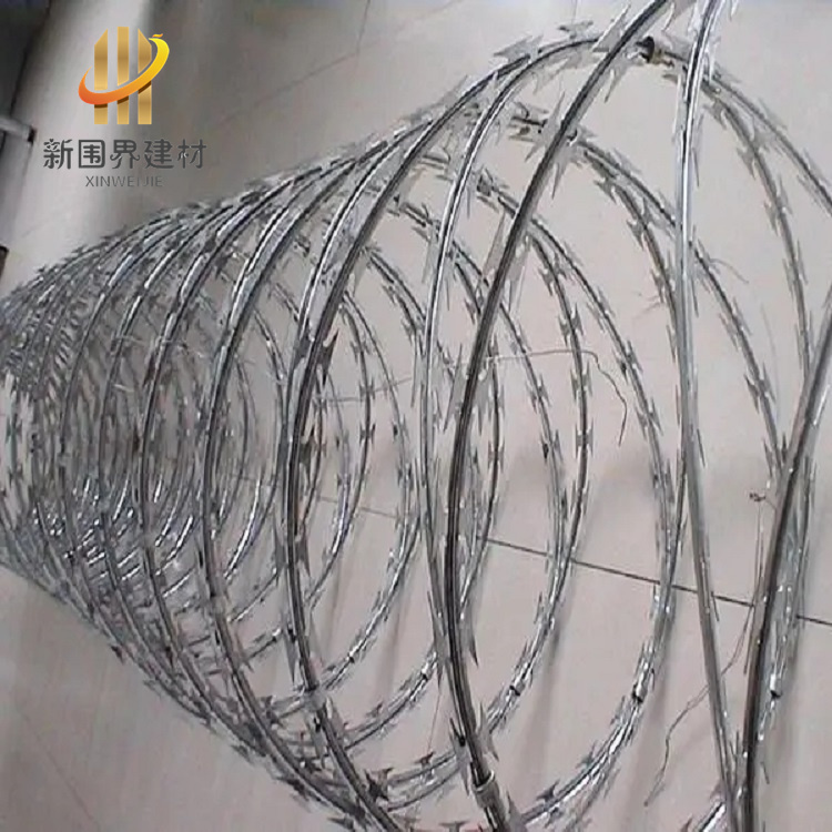 刀片刺絲,是一種發(fā)展起來的防護、隔離能力較強的新型防護網(wǎng)產(chǎn)品。鋒利的刀型刺由雙線扣裝后成蛇腹狀,具有美觀、防阻效果好、施工便利等優(yōu)點。刀片刺繩一般用于監(jiān)獄監(jiān)區(qū)做隔離和防護使用,因為刀片鋒利不易觸摸,可以起到一定的嚇阻和防攀爬的作用。刀片刺繩,用途很廣,可以用于居民的墻體防護,也可以用來圈地、生活小區(qū)圍墻、私人住宅、別墅的圍墻、門窗、高速公路、鐵路護欄以及邊境線等用來防護。