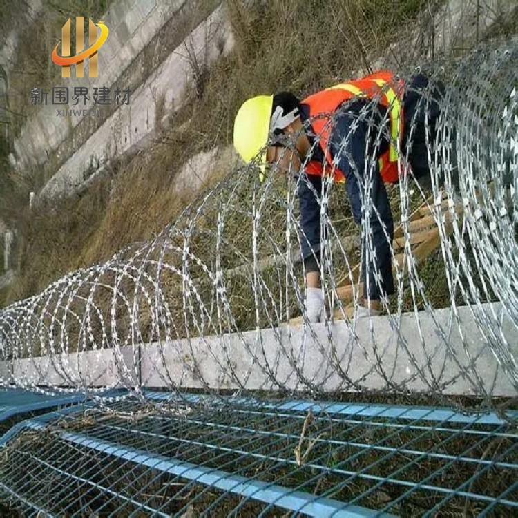 鐵路用刀片刺絲滾籠、邊境線用滾刀刺網、圍墻用雙螺旋刀片刺繩