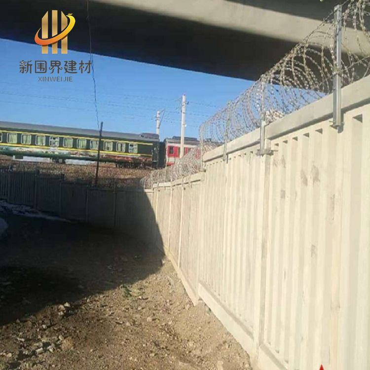 鐵路線路防護柵欄一改往日的焊接鋼絲網柵欄、刺絲網柵欄等產品,改為防御性更強、壽命更長久的鋼筋混凝土柵欄+0.5米高刺絲滾籠的金屬防護柵欄。