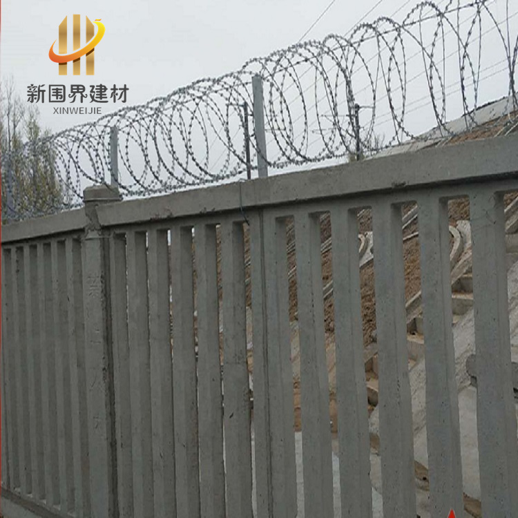 新式鐵路防護網的組成:鋼筋混凝土柵欄+0.5米高刺絲滾籠的金屬防護柵欄。