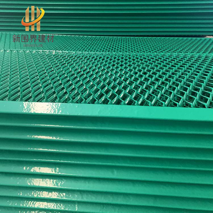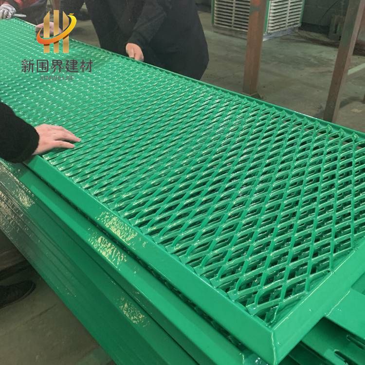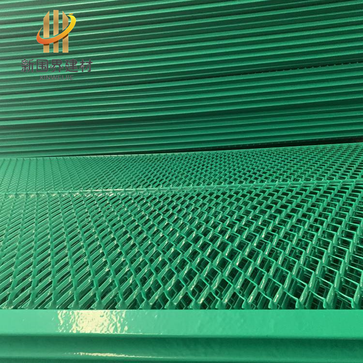 鋼板網護欄主要規格:5X50,5X5,3X5,5X10的鋼板網,沖剪后,焊接在框架之中,用連接附件與鋼管支柱連接而成;