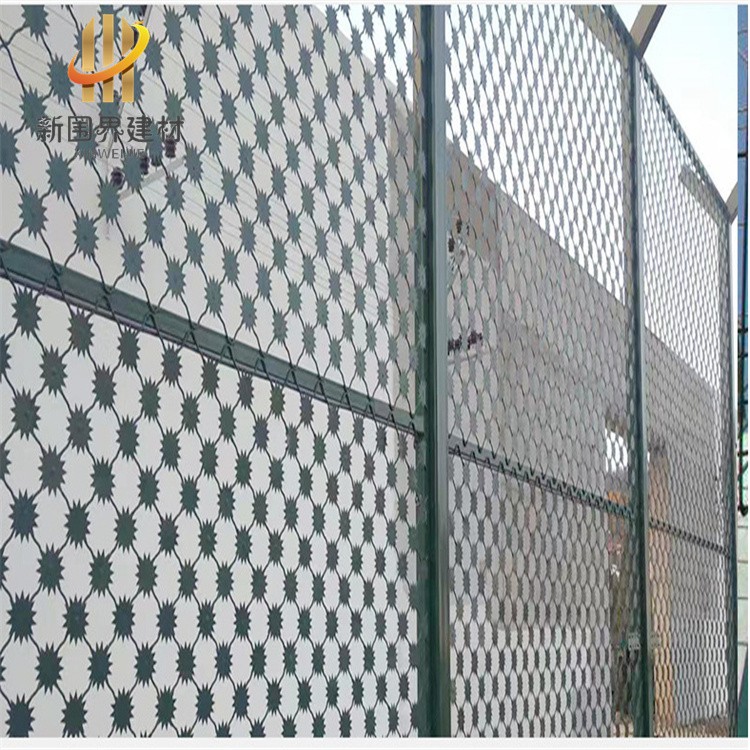 1、梅花刺片:梅花刺片直徑不小于7.0cm(直徑6cm、7cm、8cm),刺片厚1.2mm,采用Q235低碳鋼板沖壓成型。梅花刺片用氬弧焊將梅花形刺片焊接在美格網的節點上,形成刺形保護,有效的防止了手握腳攀。