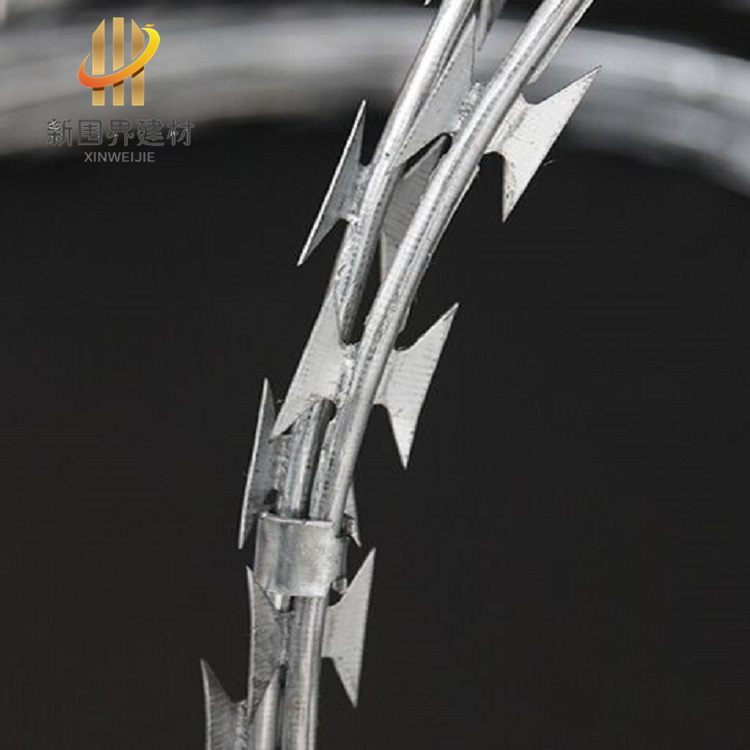 刀刺網是一種用于防止入侵和保護財產安全的安全設備。刀刺網采用高強度鐵絲網和鋒利刀刺組合而成,可防止盜竊、破壞、越墻等情況。適用于圍墻、小區、別墅、工廠、園林公寓、邊防哨所、邊境線、機場圍界頂部、監獄鋼網墻頂部等場所的安全防護。多種規格和材質供選擇,滿足不同需求。刀刺網一般指刀片刺繩。刀片刺繩也稱為刀片刺絲、刀片刺網,是一種新型防護網。刀片刺繩具有美觀、經濟實用、防阻效果好、施工便利等優異特點。
