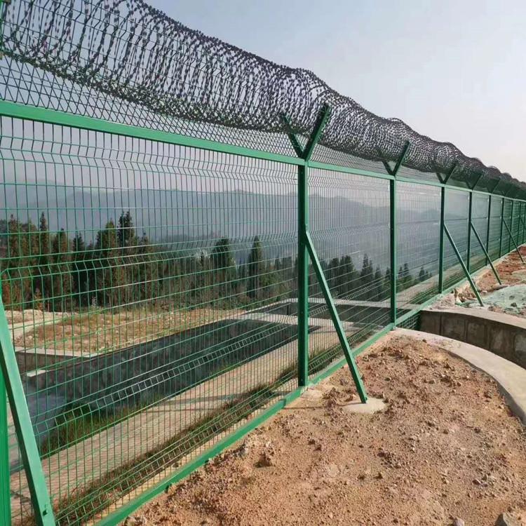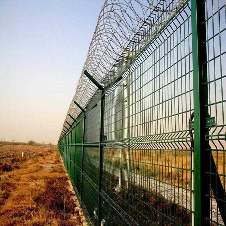 飛機場鐵絲網圍欄、機場飛行區圍網、安防隔離防護圍網又稱作“機場鋼筋網圍界”,是由Y型立柱加焊接鋼筋網片,安全防盜連接件和熱鍍鋅刀片刺網組成強度和安全防御性級別很高。被廣泛應用在機場,軍事基地等高安全場所。