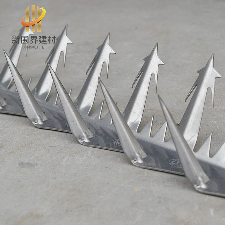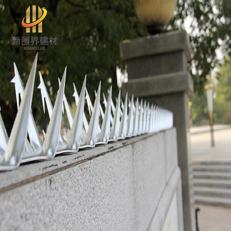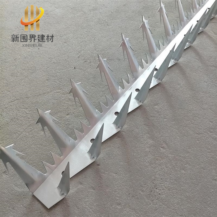 防爬刺釘采用優(yōu)質(zhì)低碳熱鍍鋅鋼板或不銹鋼板一次性沖壓而成。牢固耐用、鋒利無比、耐腐蝕、性能穩(wěn)定、使用壽命長、安裝便捷等優(yōu)點,可有效的防爬防盜。