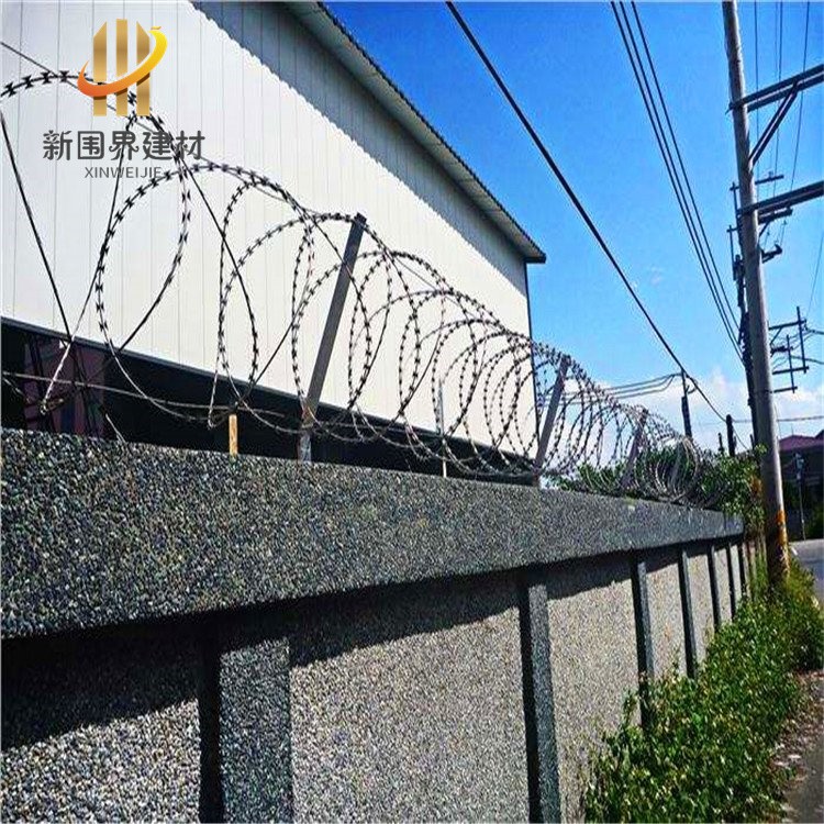 圍墻帶刀片刺鐵絲網、防盜刀片刺繩、圍墻防盜防爬帶刺鐵絲網