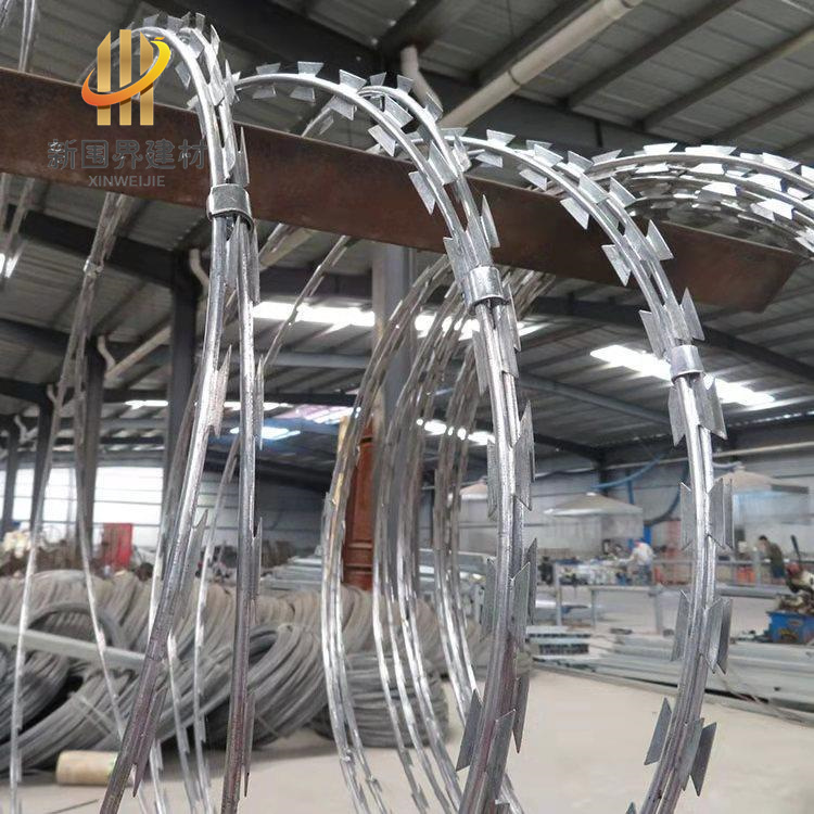 刀片刺繩稱為刀片刺絲、刀片刺網,是一種防護網。刀片刺繩具有美觀、經濟實用、防阻效果好、施工便利等特點,目前,刀片刺繩已被應用于許多的工礦企業、園林公寓、邊防哨所、軍事領域 建筑物和其他的安全設施。
