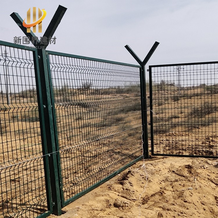 鋼筋網(wǎng)圍界規(guī)格最常見(jiàn)的是:鋼筋網(wǎng)片一般為墨綠色,外形尺寸2.5*3m,網(wǎng)孔50*100mm,絲徑5mm,立柱形式一般為Y型立柱,上端有V型支架用來(lái)固定刀刺滾籠,加強(qiáng)二次防護(hù)功能。機(jī)場(chǎng)護(hù)欄網(wǎng)立柱采用80*60*2.5mm矩形鋼管,預(yù)埋0.5m左右,整體進(jìn)行熱鍍鋅和熱浸塑處理,防腐功能強(qiáng)、使用壽命長(zhǎng),是使用量最廣泛的機(jī)場(chǎng)圍界樣式。