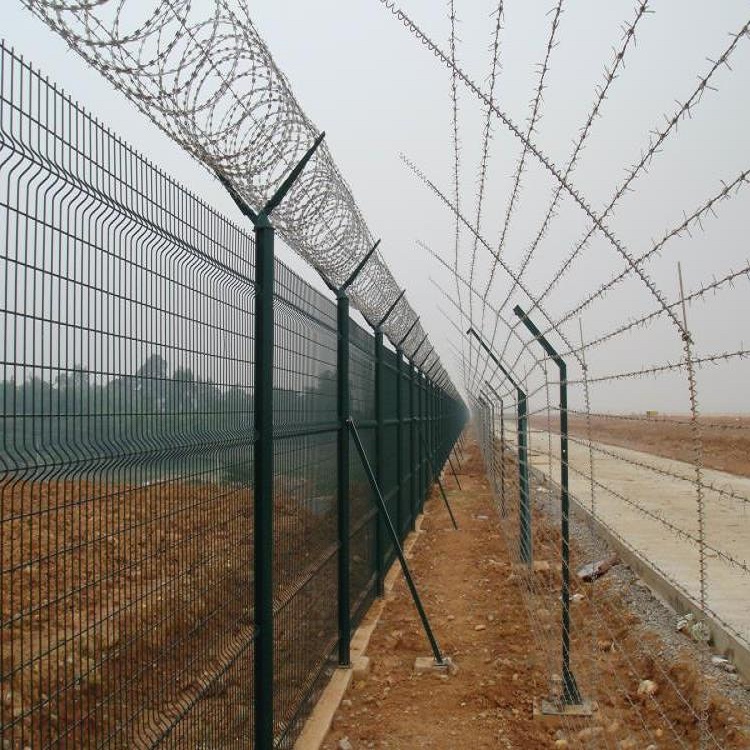 綜合保稅區隔離柵欄是由Y型支架立柱,型焊接片網,可大大增強圍網的抗沖擊力,在護欄網頂部加裝刀片刺絲、刀片刺繩后又很好的增強了安全防護性能,鋼絲做芯線組合而成的防護器材。該產品具有嚇阻、防翻越等效果,材質堅硬,高強度,高張力,造型設計,不宜觸摸,因而能達到極好的防護隔離效果。還具有施工簡便,經濟實用等優點。采用電鍍、熱鍍、噴塑、浸塑等防腐形式,具有很好的防老化、防曬、防候等特點,強度和安全防御性級別很高。