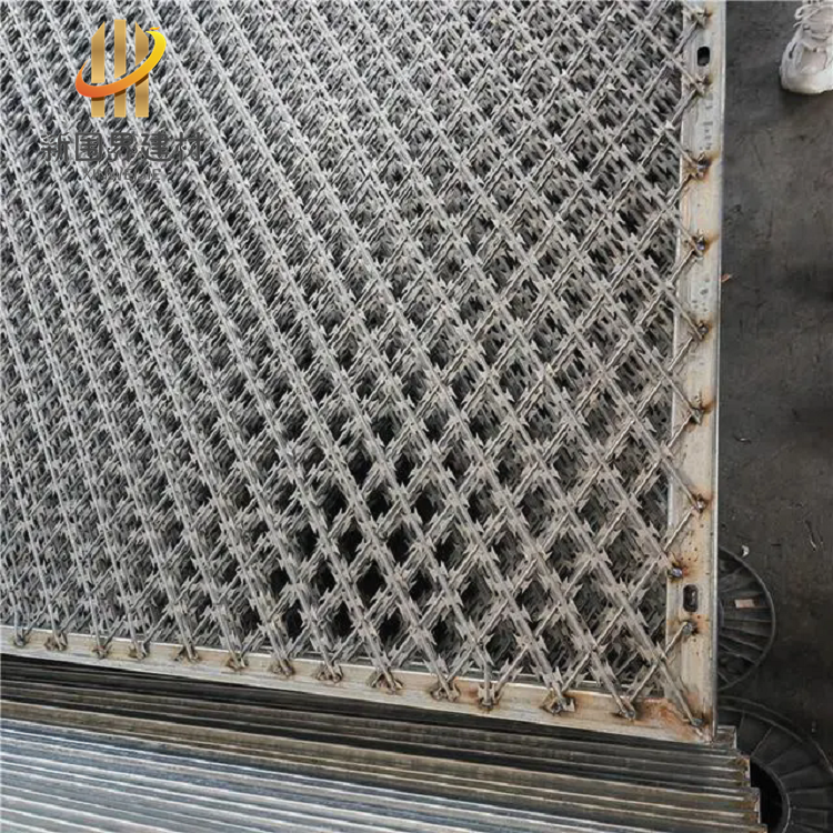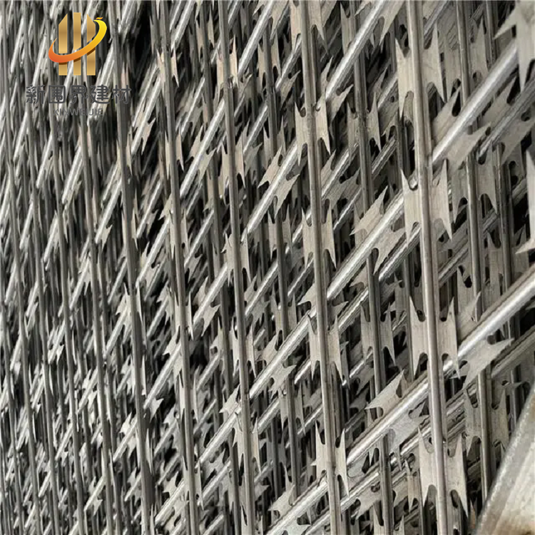 一般常見規格為:刀片刺繩焊接成菱形孔,網孔為50*100mm或者75*150mm,邊框采用20*30mm矩形管,立柱采用50*50或者60*60矩形方管焊接而成,上面裝有刀片刺網(刺絲滾籠),蛇腹型刀片刺繩具有阻嚇防觸碰的效果,材質堅硬、高張力、高強度、不易觸摸等能達到極好的隔離效果。外形尺寸一般有2.5米高*2米/2.5*2.5米/2.5*3米/3*3米等。