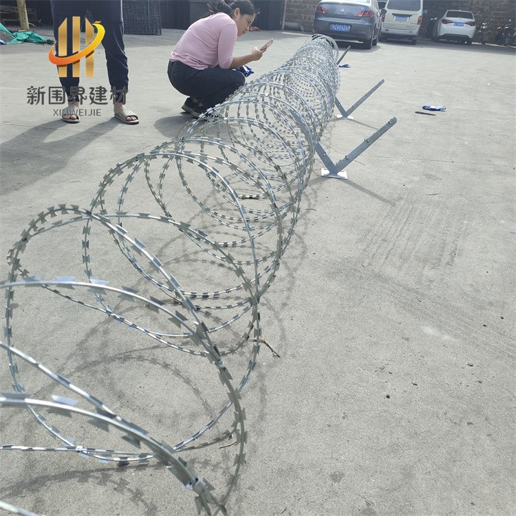 采用鋼板(刀板)沖壓成型包附于熱鍍鋅鋼絲(芯線)之上,由銳利尖角鍍鋅鋼板或不銹鋼薄板做刀片,高張力鋼絲做芯線組合而成的。BTO-22為國內最常用型號(其它型號也可以訂做)。
