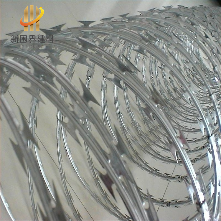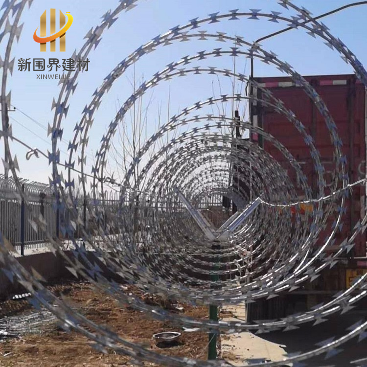 雙螺旋鐵絲網刀片刺網、刀片刺網隔離防護鐵絲網、院墻圍墻加高刀片刺網