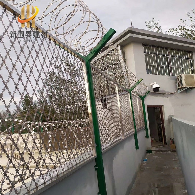 產(chǎn)品具有結(jié)構(gòu)新穎、堅(jiān)固緊密、網(wǎng)面平整、網(wǎng)孔均勻、刀鋒銳利、防攀爬、抗腐蝕性強(qiáng)等特點(diǎn)。建設(shè)于監(jiān)區(qū)的內(nèi)外墻地面及高墻之上,網(wǎng)墻內(nèi)側(cè)或頂部加裝蛇腹形刀刺網(wǎng),形成一道高不可攀、難以逾越的隔離障礙。