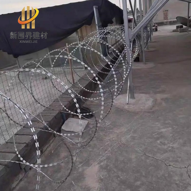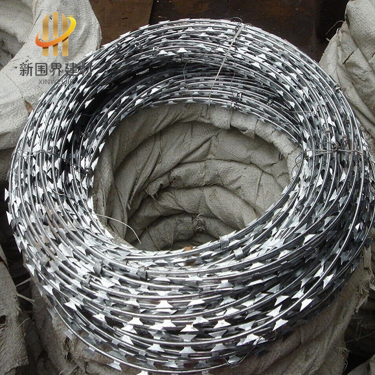 刀片刺網(wǎng)由熱鍍鋅鋼板或不銹鋼薄板沖壓出尖銳的刀片狀,高張力鍍鋅鋼絲或者不銹鋼絲做芯線組合而成的阻絕器材。由于刺繩造形獨特不易觸摸,因而能達(dá)到很好的防護(hù)隔離效果。不僅具有強(qiáng)大的物理阻隔能力和顯著的威懾效果,還具有良好的耐候性能和廣泛的適用范圍。