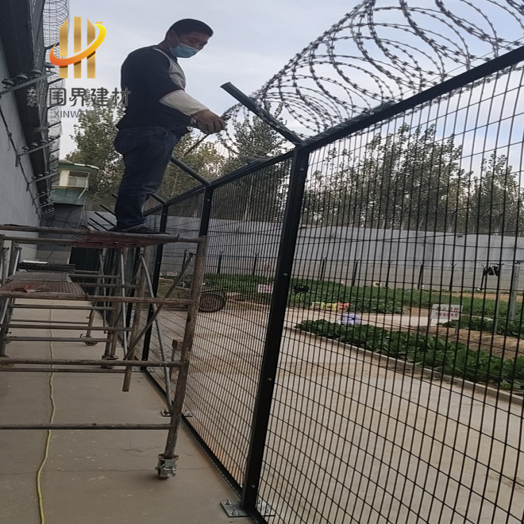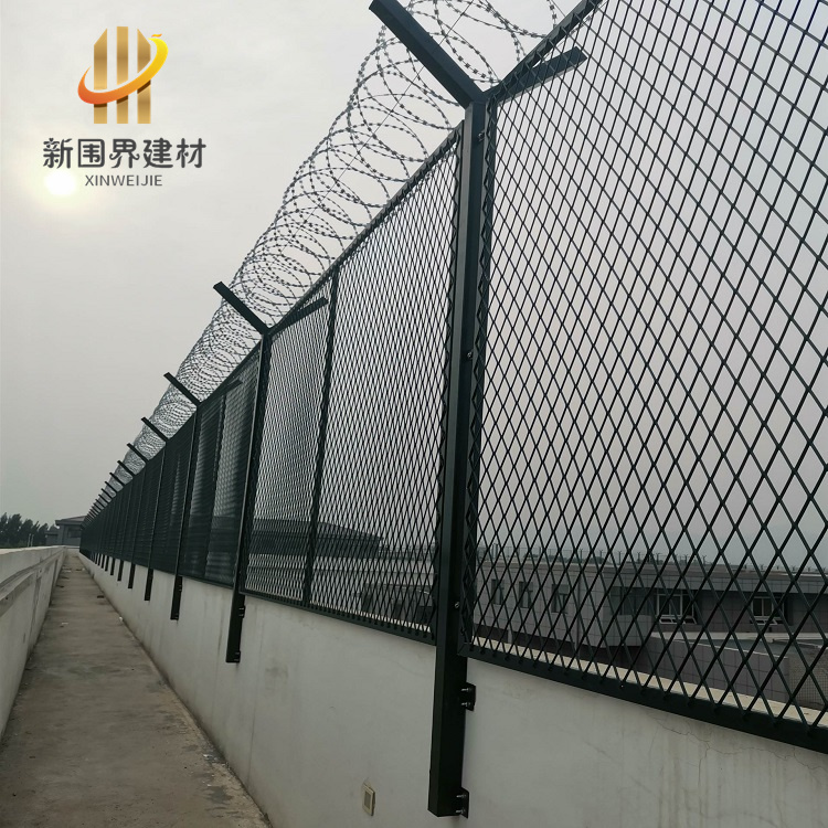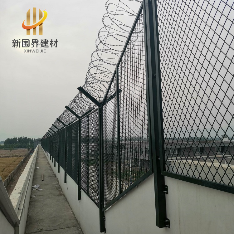 防攀爬圍網網片一般都采用邊框型,這樣的生產形勢也是為了增加網片的牢固度,網孔可以焊接成正方形、長方形,也可以焊接成菱形,也可以直接采用刀片刺繩焊接網或鋼板網材料的網片,然后在網片的基礎上四周焊接邊框,防腐進行pvc浸塑或噴塑處理。頂端安裝刀片刺繩,刀片刺繩擁有鋒利的刀片,手不能握,可以有效的阻止非法分子的攀爬,從而使監區鋼網墻從外形上邊就可以起到震撼的作用。
