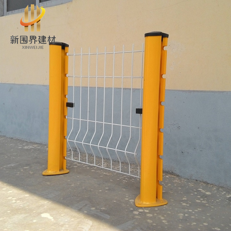 立柱采用70*100mm,截面呈半橢圓或矩形,壁厚為1.0-1.2mm?,多采用熱鍍鋅、噴塑處理,增強防腐性能,顏色可選紅、黃、藍、白、綠、灰等。網片通常都加上三道折彎,有效地增加了網片的整體強度,網孔尺寸一般為50*200mm,絲徑一般為5.0mm?。表面處理分為噴塑或浸塑,部分采用熱鍍鋅鋼管,兼具防銹與裝飾性?。圍欄高度多為1.8米,立柱中心距為2.5或3米。掛鉤設計:立柱內側設有U型掛鉤缺口,與網片緊密連接,防撬性能強?。