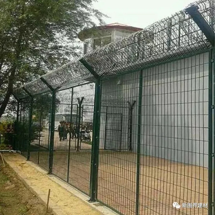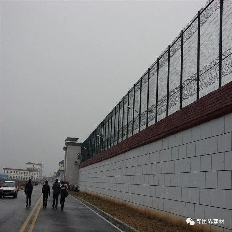 監獄圍欄網主要特點是網身高大,抗沖擊力好,尤其是V字上面的刀片刺網,刀片鋒利,防攀爬能力強,不受地形限制。廣受各地監獄防護使用。