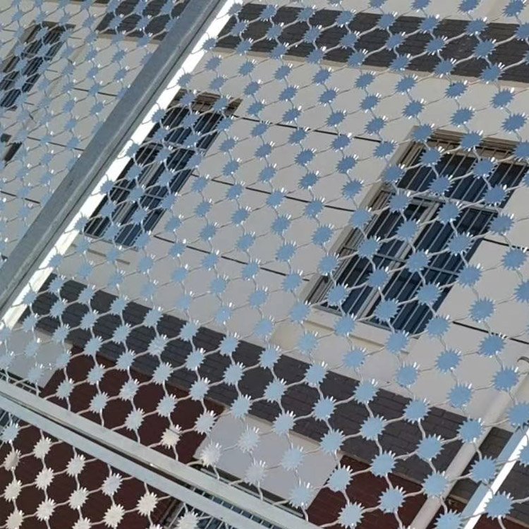 梅花刺網又稱高安全防護網、防護網,是用氬弧焊將梅花形刺片焊接在美格網的節點上,形成刺形保護,防止了手握腳攀,為此該網開始廣泛使用。