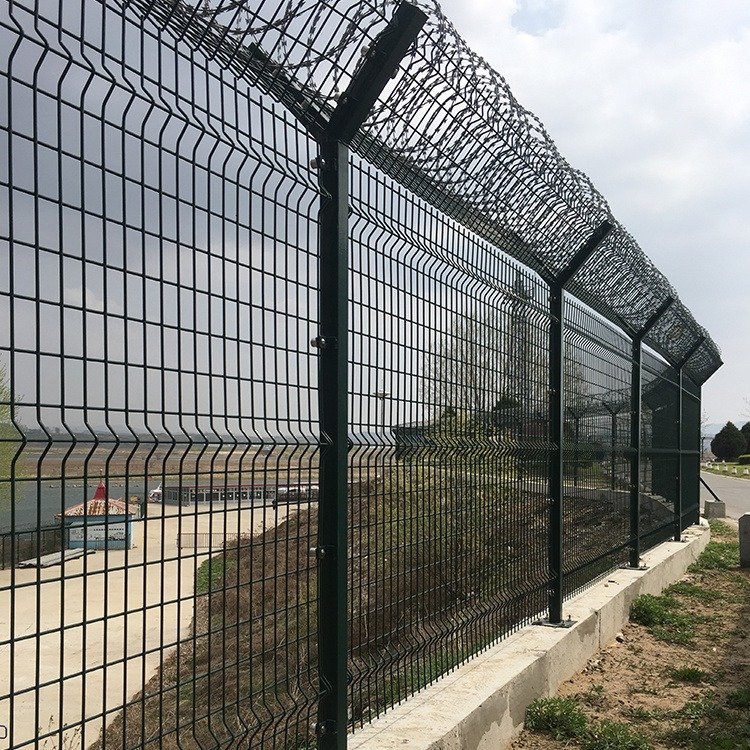 機場圍界網護欄網又稱作“Y型安全防御護網”和機場護欄網通用,是由V型支架立柱型焊接片網,安全防盜連接件和熱鍍鋅刀片刺籠組成強度和安全防御性級別很高。近年來,被應用在,軍事基地等高安全場所。