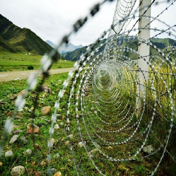 標簽: 邊境線鐵絲網(wǎng)、 邊界防護設(shè)施刀片刺網(wǎng)、 國界邊境警戒線周圍金屬焊接刀刺隔離柵、