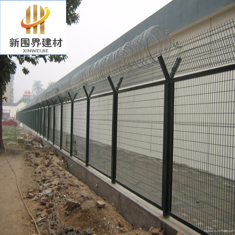 監(jiān)獄護(hù)欄網(wǎng),通常由加強(qiáng)型焊接網(wǎng)片加刺絲滾籠組成,達(dá)到隔離防護(hù)和防攀爬的目的,因此又稱作“Y型安全防御護(hù)網(wǎng)”。