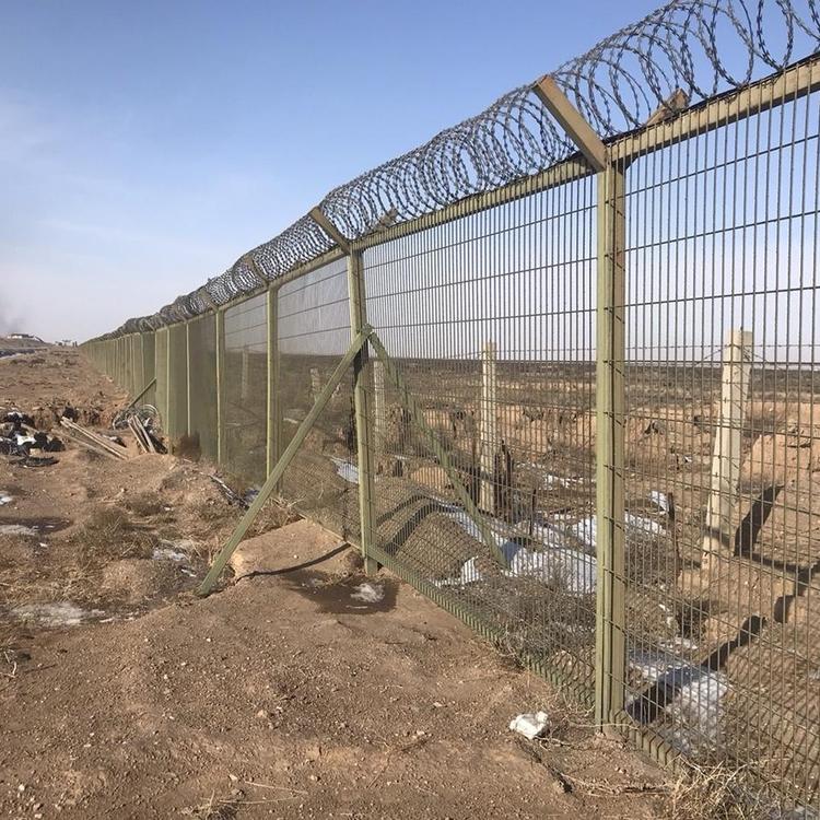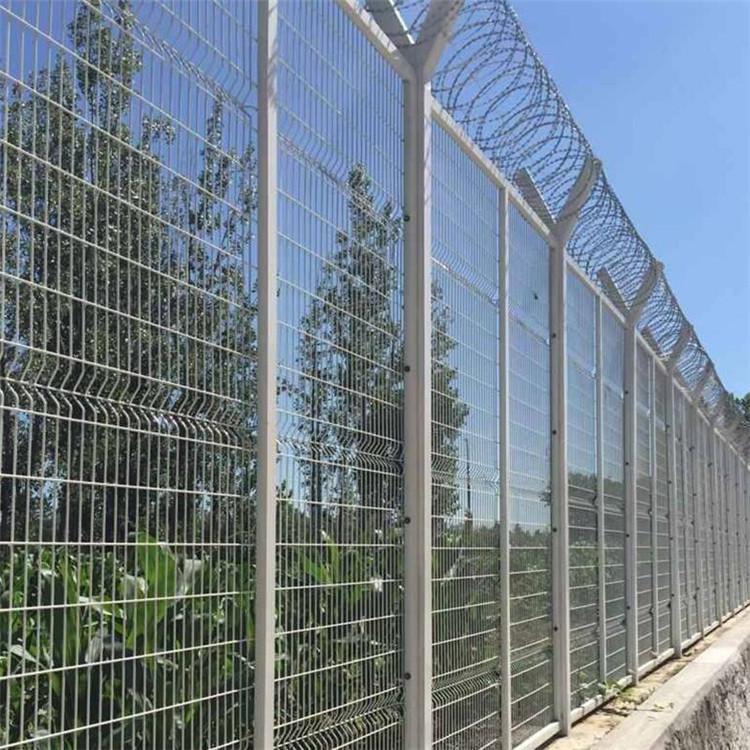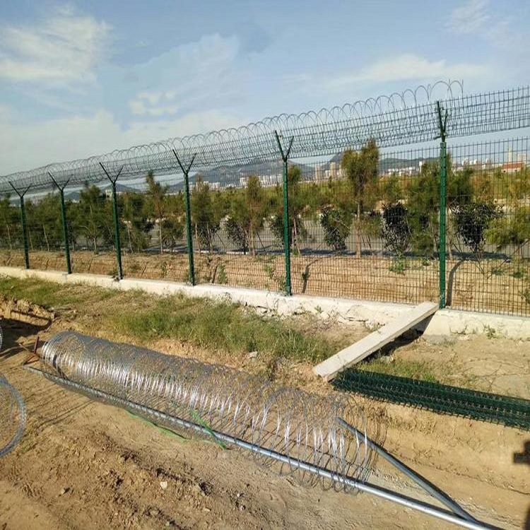 機場圍界的造型一般圍“Y”字型,由Y型立柱、網片和刀片刺繩組成。