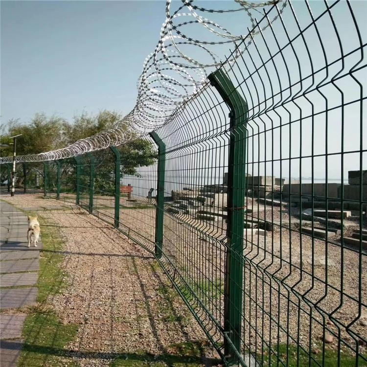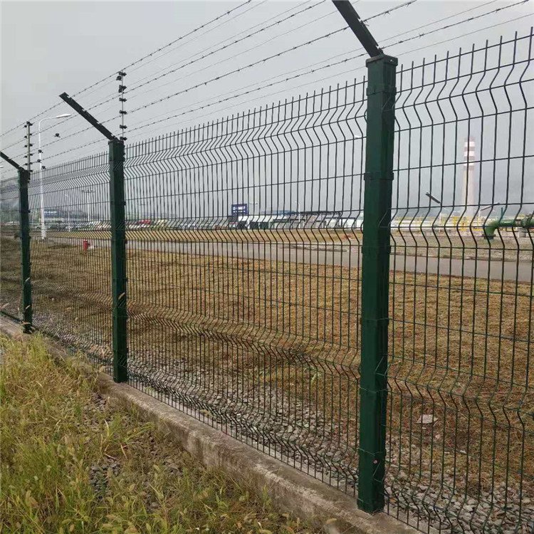 特點:如果在機(jī)場護(hù)欄網(wǎng)頂部加裝刀片刺絲、刀片刺繩后又很好的增強(qiáng)了安全防護(hù)性能。采用電鍍、熱鍍、噴塑、浸塑等防腐形式,具有很好的防老化、防曬、防候等特點。其產(chǎn)品造型美觀、花色多樣,既起到圍欄作用,又起到美化作用。由于具有安全性高、防攀爬能力好,網(wǎng)片連接方式采用特制SBS緊扣件,有效防止人為的破壞性拆卸,橫向四道折彎加強(qiáng)筋,使網(wǎng)面強(qiáng)度顯著增加。