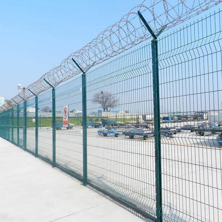 機(jī)場(chǎng)圍界是由折彎網(wǎng)片, V型支架立柱,加強(qiáng)型焊接片網(wǎng),上面有刀片刺繩,安全防盜連接件組成強(qiáng)度和安全防御性級(jí)別很高一種圍網(wǎng)。