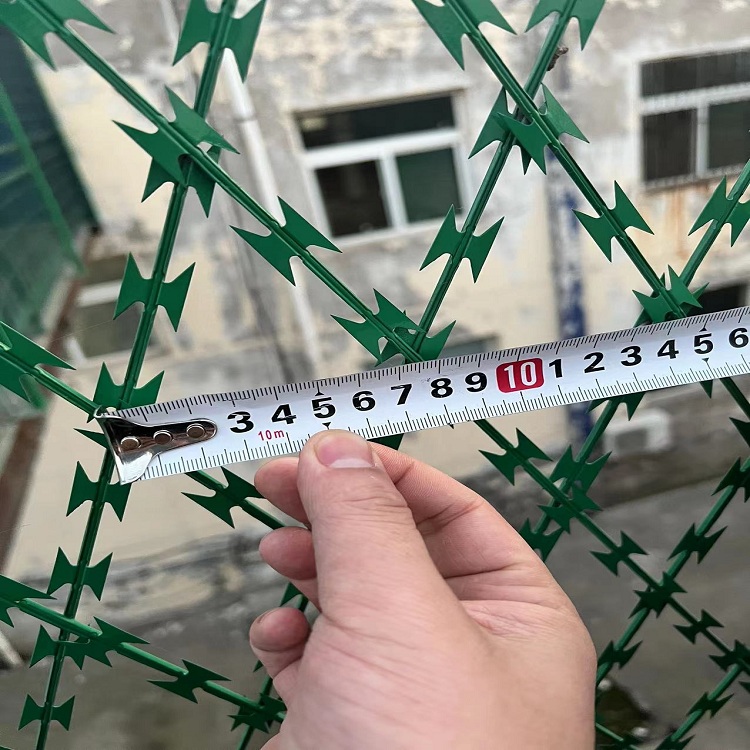 焊接刀片刺網也叫做鐵籬笆,焊接刀片刺網是由直線型刀片刺網交叉焊接成型。