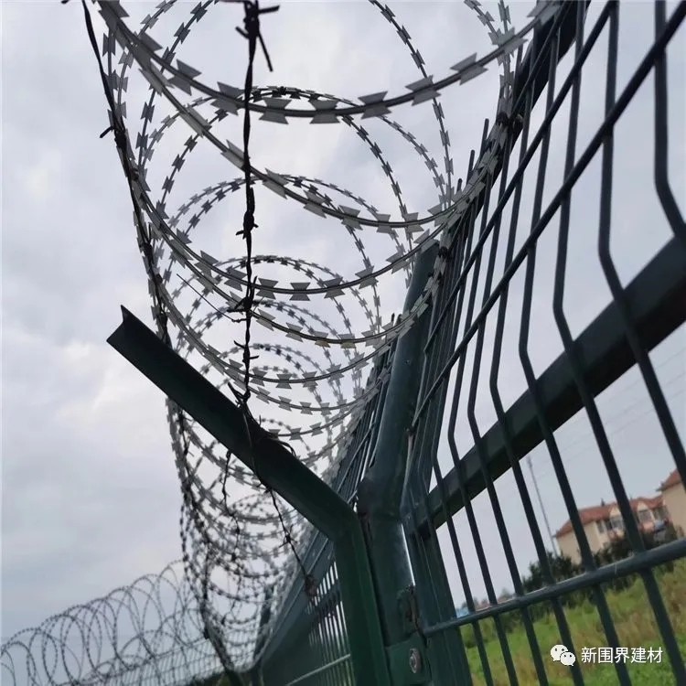刀片刺繩防護(hù)網(wǎng)主要用于園林公寓、機(jī)關(guān)單位、哨所、邊防等的圈禁防護(hù)。刀片刺繩防護(hù)網(wǎng)由銳利尖角鍍鋅鋼板或不銹鋼薄板做刀片,高張力鋼絲做芯線組合而成的阻絕器材。由于刀片刺繩防護(hù)網(wǎng)造形獨(dú)特不易觸摸,因而能達(dá)到極好的防護(hù)隔離效果。