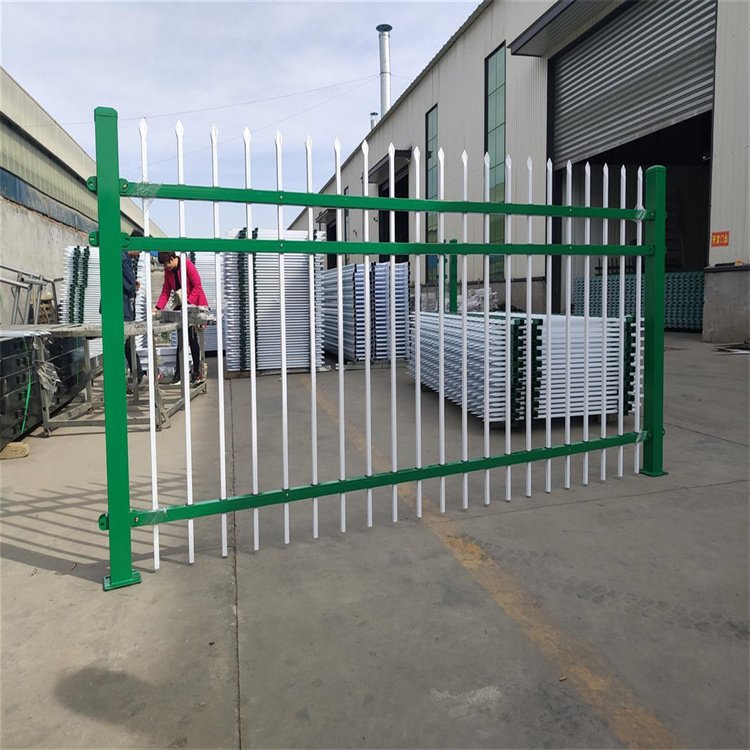 三橫桿藍白色鋅鋼圍墻護欄、鍍鋅鋼管兩橫欄圍欄、小區防護圍墻