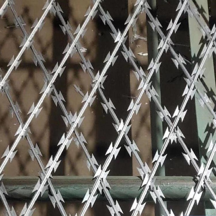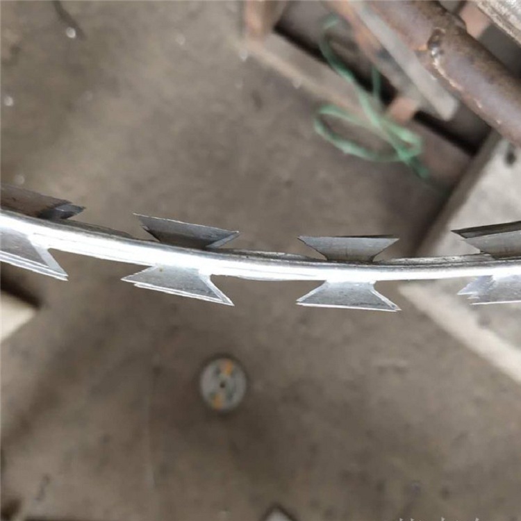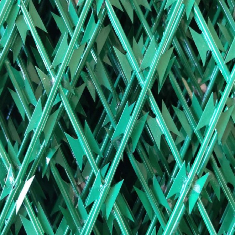 刀片刺網具有美觀、經濟實用、防阻效果好、施工便利等特點,刀片刺網由熱鍍鋅鋼板或不銹鋼薄板沖壓出尖銳的刀片狀,高張力鍍鋅鋼絲或者不銹鋼絲做芯線組合而成的阻絕器材。由于刺網造形獨特不易觸摸,因而能達到非常好的防護隔離效果。刀片刺網已被廣泛應用于工礦企業,園林公寓,邊防哨所,軍事領域,監獄,看守所,政府建筑物和區域的安全設施。