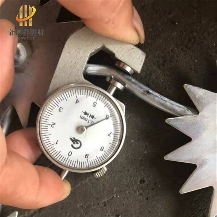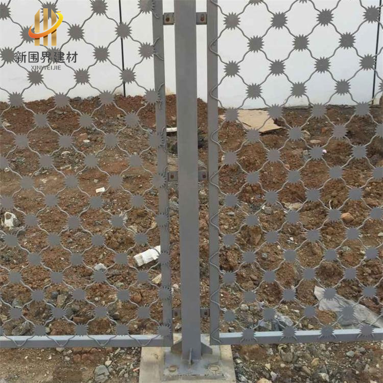 主要是采用高強度的刀片刺網(wǎng)與普通防護網(wǎng)的結(jié)合,由V型支架立拄,型焊接片網(wǎng),安全防盜連接件和刀片刺網(wǎng)組成.刀片刺網(wǎng)是一種防護網(wǎng),由銳利尖角鍍鋅鋼板或不銹鋼薄板做刀片,鋼絲做芯線組合而成的防護器材。