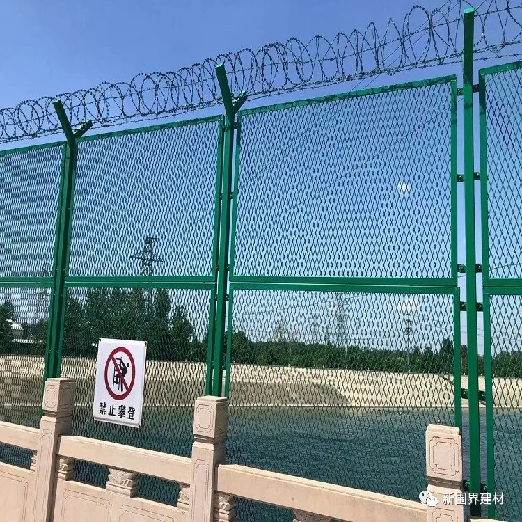 水源地焊接網隔離柵框架護欄網又稱為"邊框式防攀焊接片網",框架隔離柵等。是一種組裝十分靈活的產品;既可以制作成長期性網墻,又可以作為臨時隔離網使用,只需要采用不同的立柱固定方式便可實現。