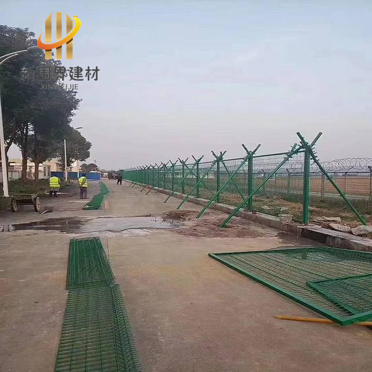 機(jī)場(chǎng)圍界網(wǎng)也叫機(jī)場(chǎng)護(hù)欄網(wǎng)、機(jī)場(chǎng)隔離柵、機(jī)場(chǎng)安全防護(hù)網(wǎng),是一種由鋼絲焊接后鍍鋅,再噴塑或者浸塑的高端護(hù)欄網(wǎng)產(chǎn)品。通常采用Y字型立柱,這種造型是為了方便在頂部架設(shè)刀片刺網(wǎng),這種組合模式可以大大提高機(jī)場(chǎng)圍界網(wǎng)的安全防護(hù)性能。定制熱線:18033766898