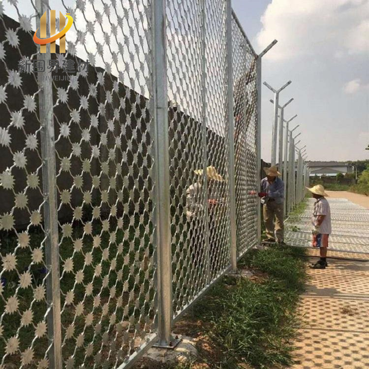 梅花刺片防逃網,是將梅花形刺片焊接在美格網的節點上,形成刺形保護,防止了手握腳攀,具有美觀、經濟實用、防阻效果好、施工便利等特點,還可以用于軍事設施、電力配電站、邊防線、邊防哨所的高安全圍網。總之,最重要的特點就是防攀爬功能強大。