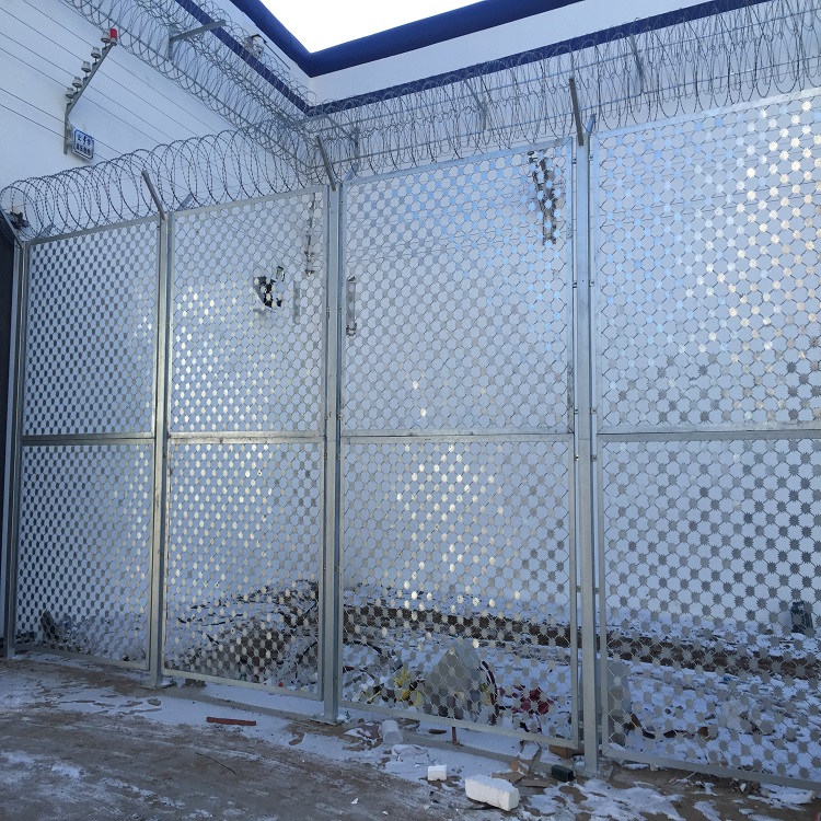 太陽花刀片刺網(wǎng)@沖壓監(jiān)獄鋼網(wǎng)@太陽花刺隔離網(wǎng),又叫梅花刺防攀爬鋼網(wǎng)墻,通常用于監(jiān)獄、看守所、戒毒所、哨所、邊防等地的安全防御工程。