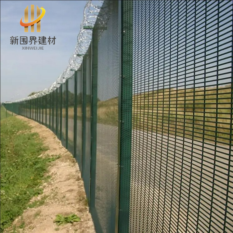 358密紋網(wǎng)的網(wǎng)孔小,網(wǎng)格加密,因此不宜穿透,具有防攀爬、防剪切的特點。特別適用于監(jiān)獄、機場、邊境、軍事等安全性能高的場所,同時也可用于工業(yè)、商業(yè)或者體育場所,滿足對于堅固、隔離、實用和美觀的需求。358密紋網(wǎng)還可以搭配防爬刺或者刀片刺繩,增強防攀爬和防護(hù)效果。