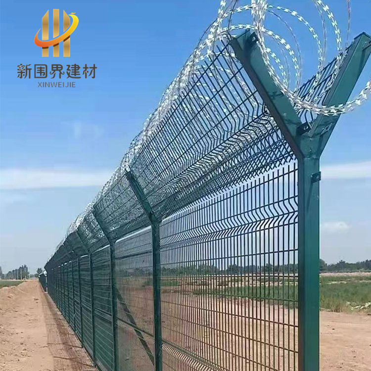 機場金屬圍界,也叫鋼筋網圍界、機場圍界網、機場圍欄網、機場隔離柵、Y型安全防護網、軍產地圍界等。定制熱線:18033766898