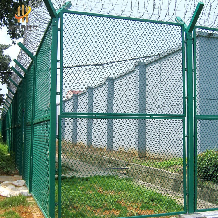 機場金屬圍界常見的類型有鋼筋焊接網、鋼板網圍界、鋁包鋼勾花網圍界。基本的結構都是Y型立柱,加網片和頂部刀刺網或者刺鐵絲圈,強度大,安全性能強,常用于機場、監獄、邊境,軍事等。